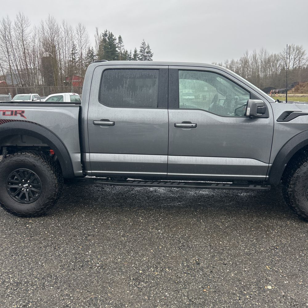 The 2025 Ford F-150 Raptor is an advanced performance pickup combining aggressive styling with impressive turbocharged power. Finished in gray, it is powered by a 3.5-liter EcoBoost twin-turbo V6 producing 450 horsepower paired with an automatic transmission.